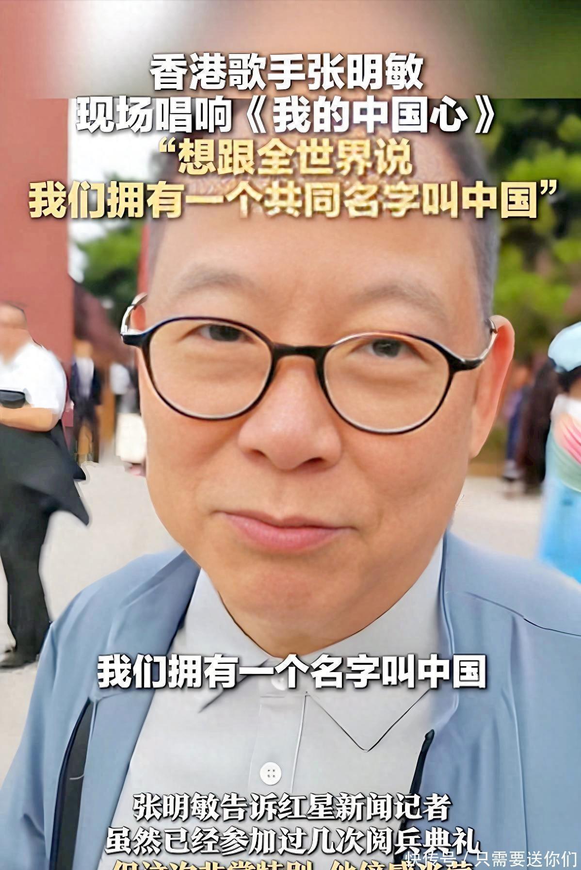 香港词作者黄霑非常愤怒,便手持笔创作了《我的中国心》,由王福龄作曲。这首歌一旦完成,却无人愿意演绎。当时香港的知名歌手觉得这首歌过于爱国,担心会影响自身的商业声誉,纷纷拒绝演唱。有人建议让张明敏尝试演唱。他拿到歌词后,看到“洋装虽然穿在身,我心依然是中国心”,眼眶瞬间泛红。